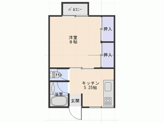 | 詳細間取 | 1DK (洋8帖×1、DK5.25帖) | ||